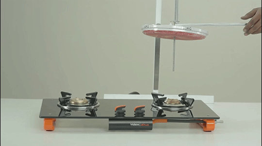 • Vidiem Satin 3 Burner Glass Cooktop – Light as Air, Strong as Steel, Extra Large Cooking Surface & Widely Spaced Burners to accommodate Large Vessels with Medium & Small Brass Burners.