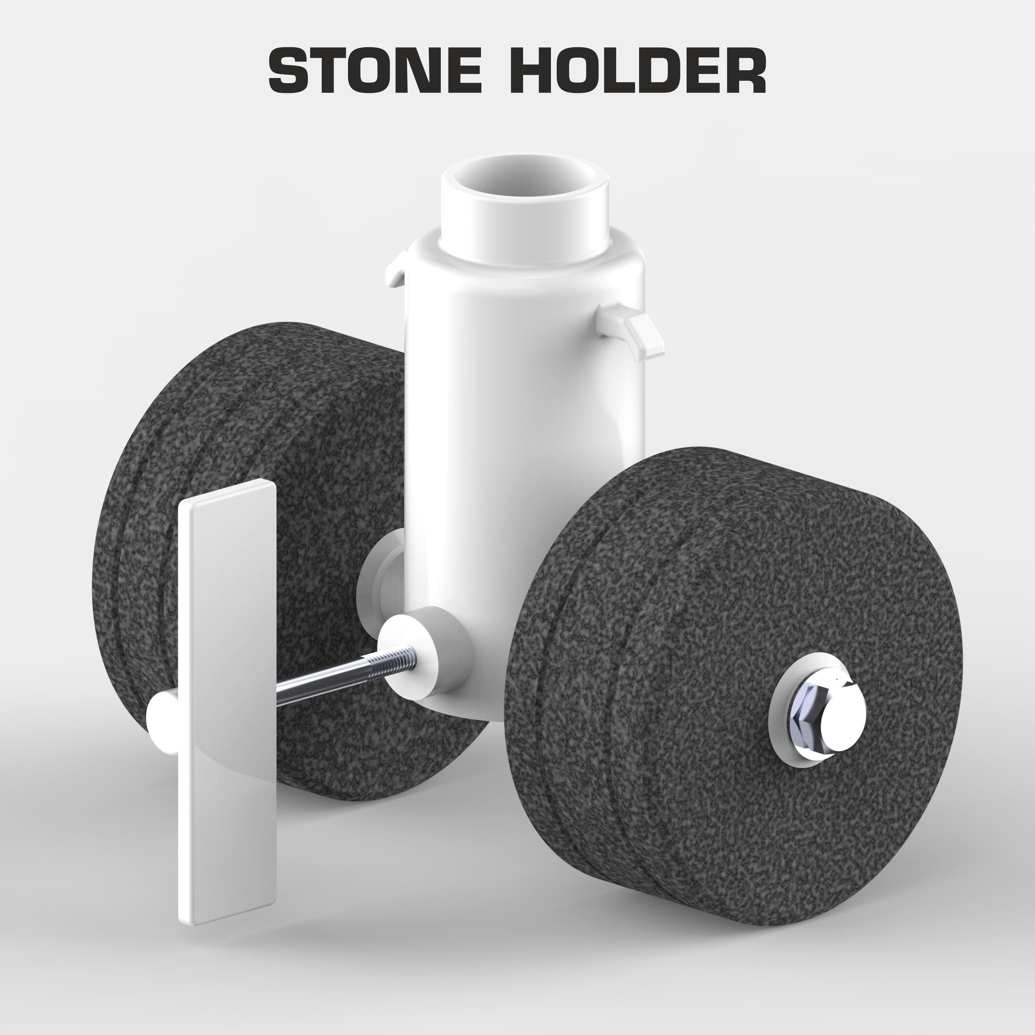 Heavy Gauge Rust Proof Stainless Steel Drum with Precision Machined Stone Base & Extra Wide Stone Rollers.